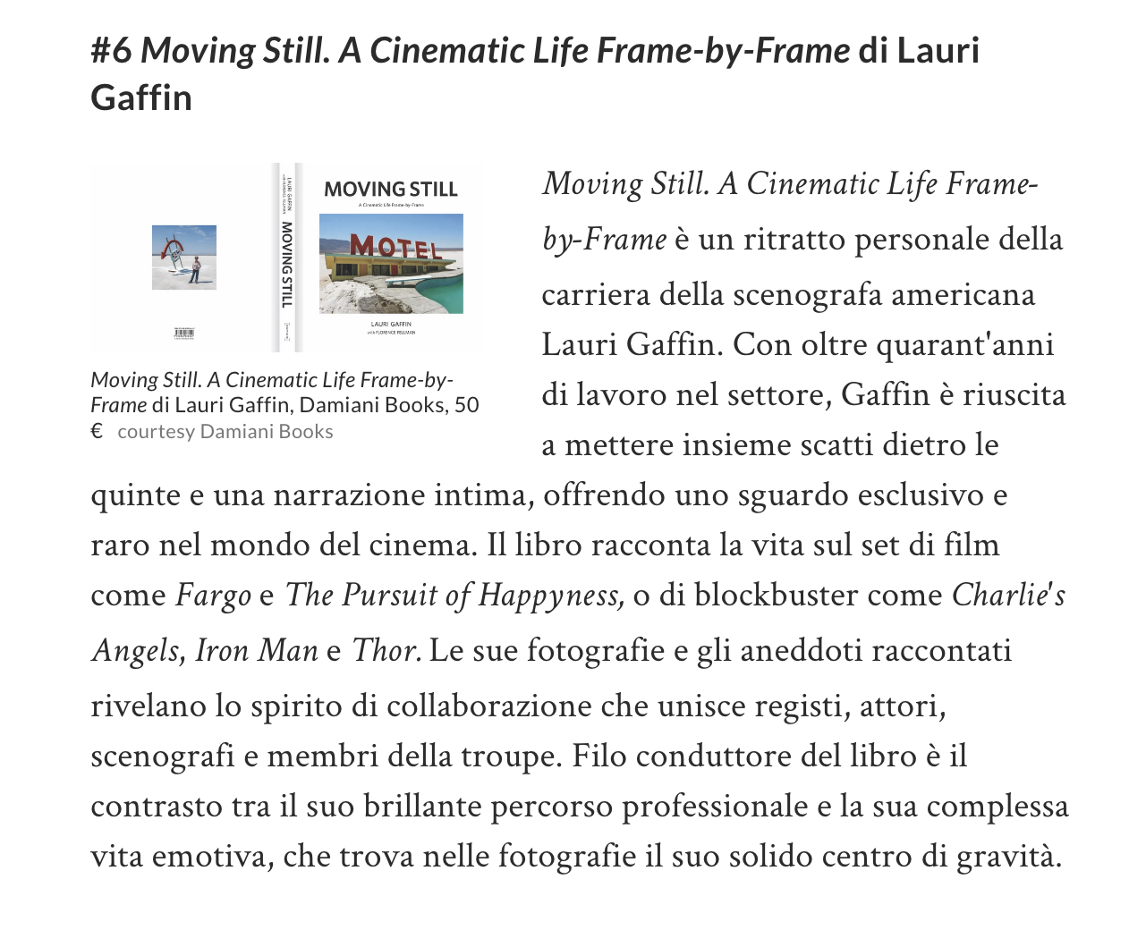 Lauri Gaffin has spent 35 years as a set decorator in Tinseltown. In “Moving Still’, she provides a rare glimpse of life behind the scenes on productions from 1996-2019, from indie gems ‘Fargo’ to blockbusters including ‘Iron Man’ and ‘Thor’.